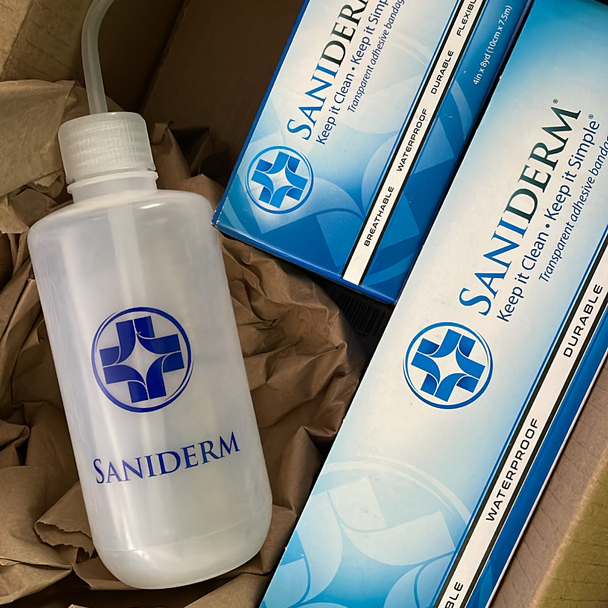 Saniderm brings innovative medical-grade products to the world of tattooing to improve comfort, enhance self-image, and elevate the wound care and skin industries. Saniderm is the universal leader in positive wound and skin care experiences. Between dermatologist-recommended aftercare bandages which maximize the body's natural healing process, and a complete line of topicals packed with natural, nutrient-rich ingredients, Saniderm offers everything needed to heal, cleanse, maintain, and elevate your art.